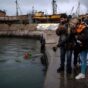 Desde allí, la movilización fue encabezada de manera simbólica por un coche fúnebre, y los familiares avanzaron de hacia la Banquina de los Pescadores, donde depositaron una ofrenda floral en el mar en recuerdo de las víctimas.