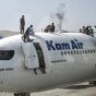 Esta mañana, videos mostraban en redes sociales a centenares de personas que esperaban en la pista, y jóvenes que se arracimaban en las escaleras y en la puerta, intentando subir a un avión.
