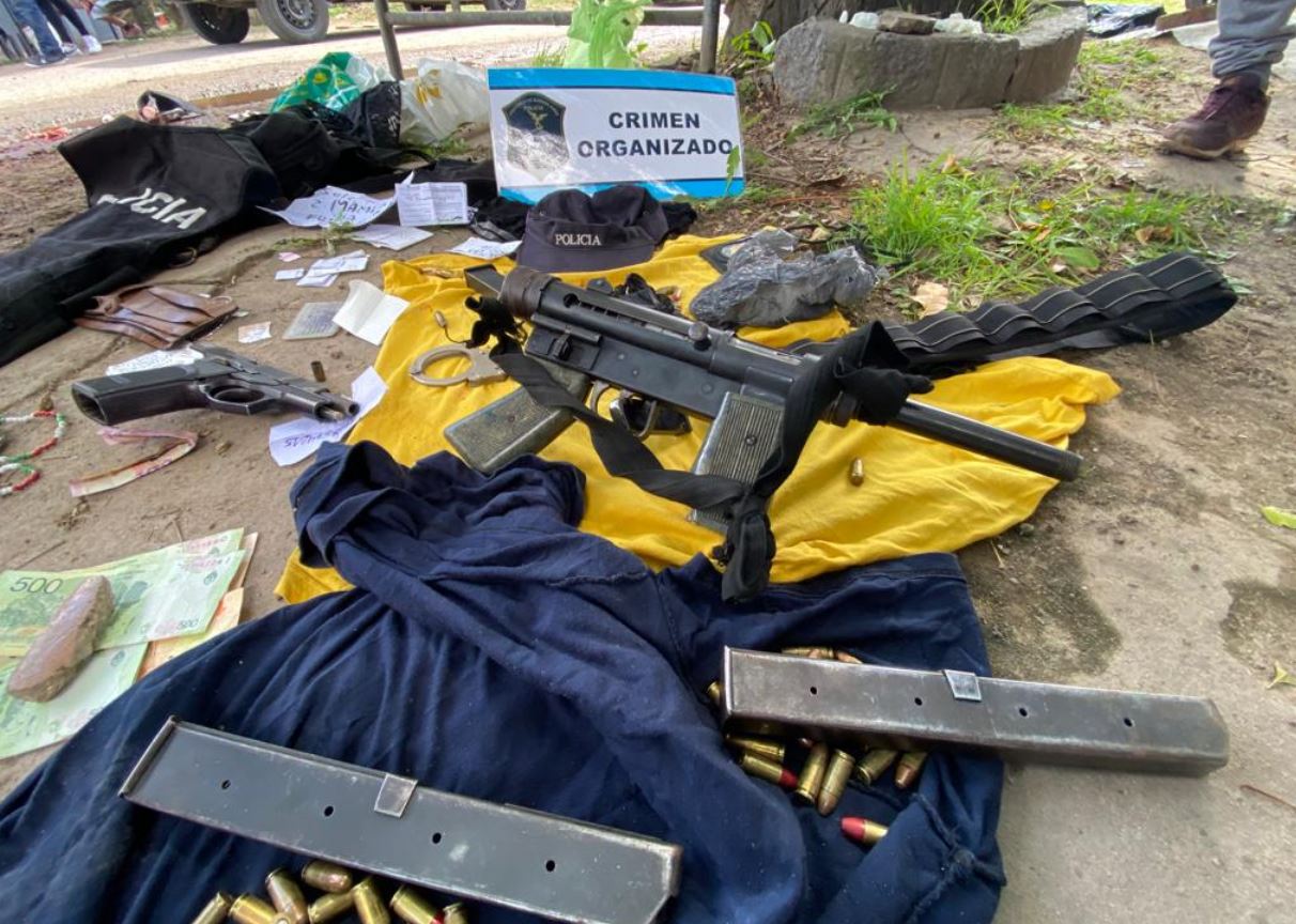 En su poder, el personal secuestró una pistola Bersa calibre 9 milímetros y dentro de una mochila que llevaba hallaron una ametralladora Halcón del mismo calibre con el cargador colocado, un chaleco de transporte con la inscripción “Policía”, una gorra de la misma fuerza, un juego de esposas y dinero en efectivo.