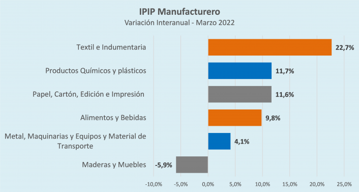 Productos químicos y plásticos: ascendió un 11,7% anual y un 6,5% mensual. CAME señaló que “la demanda estuvo firme y las consultas para futuros pedidos se mantuvieron activas”, pero que “hubo problemas en el abastecimiento de combustibles y las empresas manifestaron que las subas de precios actuales todavía en marzo no tuvieron tanta incidencia en los costos”.