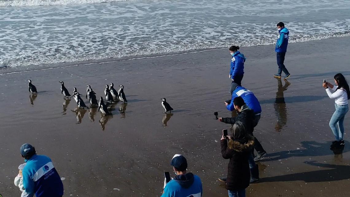 Un grupo de 12 pingüinos magallánicos regresó al mar en las playas de San Clemente del Tuyú, luego de atravesar un período de rehabilitación en la Fundación Mundo Marino en el Partido de La Costa.