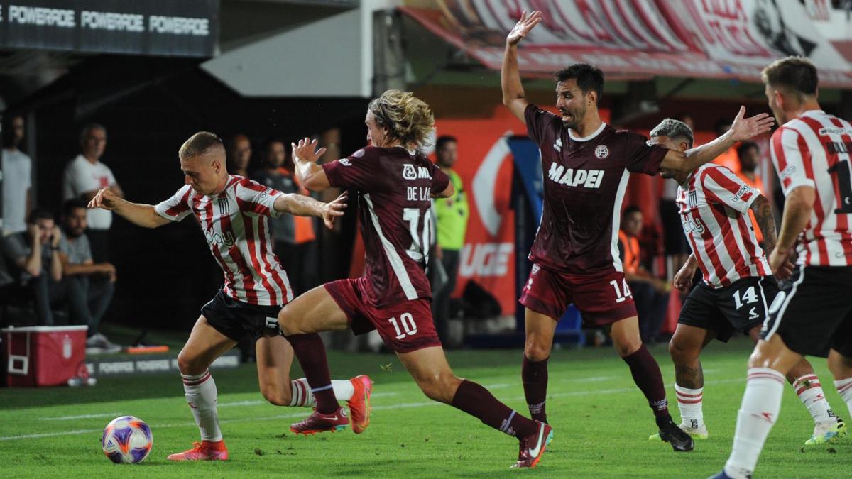 Cinco minutos más tarde, el corpulento Carrillo cabeceó alto, luego de un córner ejecutado por Matías Godoy. Y cuando el primer tiempo se iba en blanco, Lanús sacó provecho de una pelota parada para adelantarse en la pizarra.