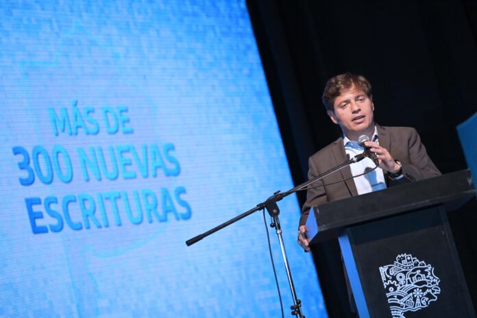 El gobernador Axel Kicillof encabezó este lunes firmas de convenios del programa “Municipios a la Obra” con distintas comunas y, en un acto en el que participaron varios intendentes de Juntos por el Cambio, resaltó que su gestión trabaja con los 135 distritos y apuntó contra los candidatos opositores nacionales que hablan de “ajustar todo” y “dinamitar”.