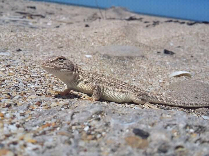 La “lagartija de las dunas” tiene una cabeza forma de pala, petequias en su lomo que aparentan ser arena y una cola corta de la que pueden desprenderse.