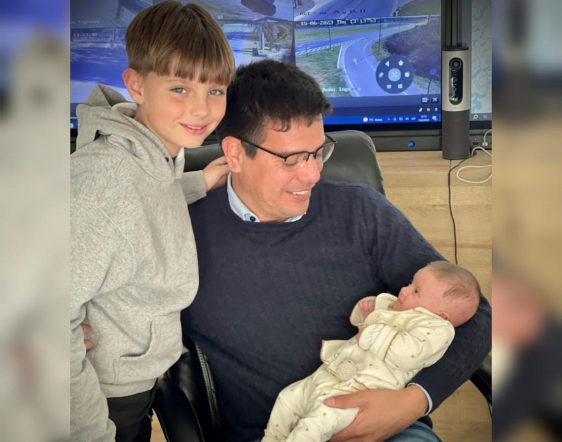 La publicación está acompañada por una linda imagen, en la que se lo ve con su hija en brazos y Milo, hijo de su pareja Jimena Campisi.