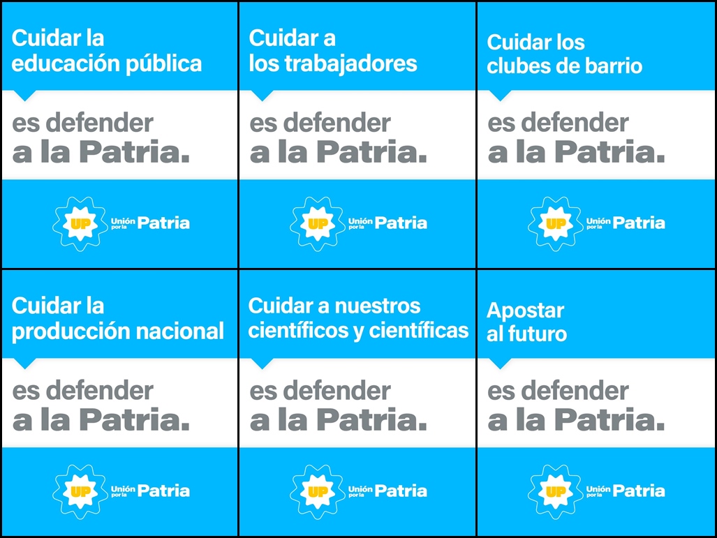 Funcionarios y dirigentes de la coalición oficialista Unión por la Patria (UP) difundieron la consigna #DefenderALaPatria a través de distintos posteos en redes sociales, en los que instaron a los votantes a “cuidar el acceso a la salud, la vivienda y el trabajo”, en el marco de la campaña electoral de cara a las primarias abiertas, simultáneas y obligatorias (PASO) del 13 de agosto.