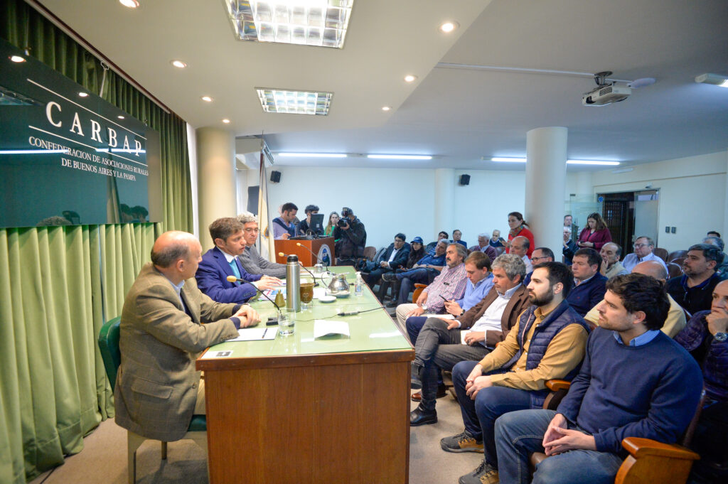 El gobernador Axel Kicillof defendió este miércoles su gestión agropecuaria ante representantes rurales, pidió que el sector deje de lado “prejuicios” ideológicos, al tiempo que criticó las propuestas opositoras y consideró que ninguna otra gestión realizó tantos avances en la obra del Salado ni en caminos rurales como la suya. Además, consideró que hablar de retenciones es un “fetiche”.
