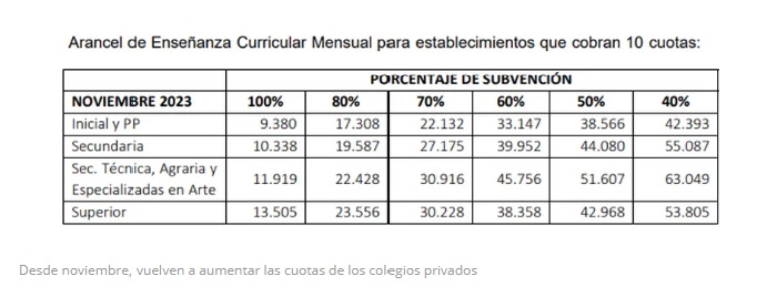 Además, sostuvo en la misiva que “dada la inflación y las variaciones económicas, consideramos crucial la implementación de una cláusula gatillo en los contratos de aranceles. Esto permitiría ajustarlos de manera automática, en respuesta a los incrementos de los salarios docentes. De esta manera se asegura la estabilidad financiera de nuestras instituciones”. (DIB)