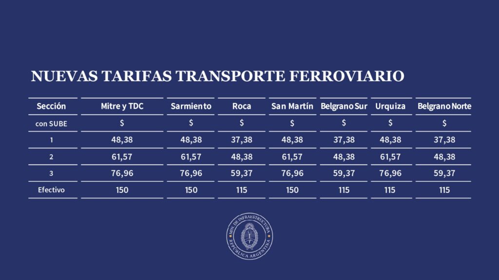De esta manera, el boleto mínimo pasará a costar $37,38 en las líneas Roca, Belgrano Sur y Belgrano Norte y $48,38 en las líneas San Martín, Sarmiento, Urquiza, Mitre y Tren de la Costa.