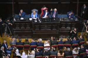 “El extravagante experimento al que está siendo sometida la Argentina exige acciones extraordinarias del Gobierno provincial”, advirtió Kicillof en una de las primeras expresiones de su discurso en el que no se limitó a proyectar el informe de su gestión. “Confieso que me hubiera gustado iniciar esta segunda etapa en un contexto diferente. Estamos pasando por una circunstancia muy incierta y sombría”, alertó.