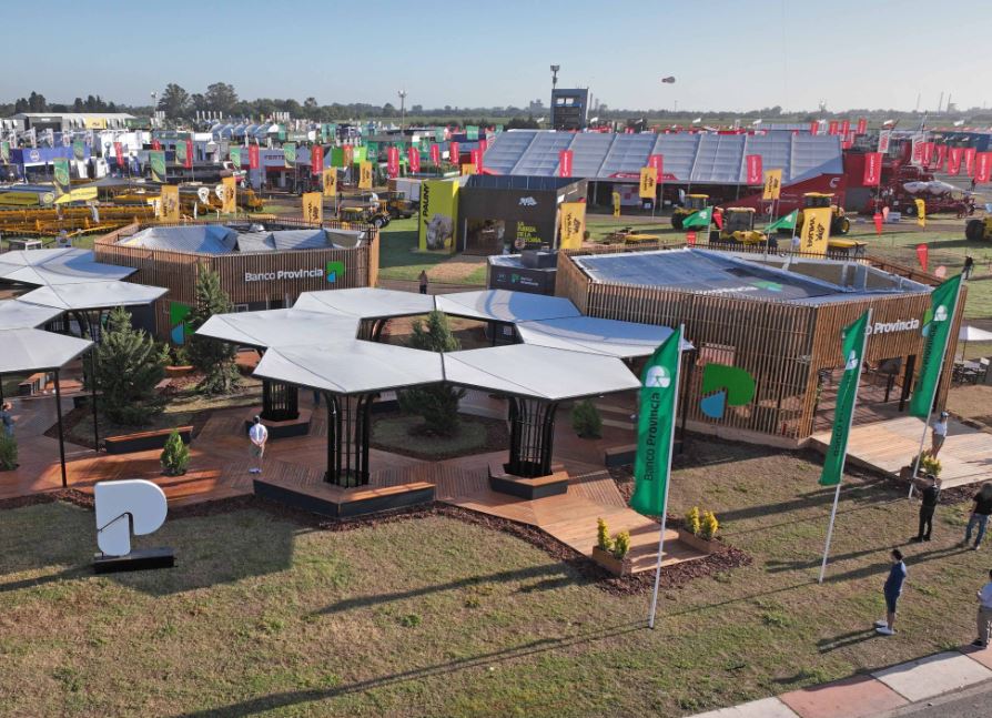 Este año, el stand de 700 m² desarrollado por el equipo creativo de Banco Provincia cuenta con una serie de plazas semicubiertas conectadas entre sí y dos módulos techados. Además, presenta 12 puestos de atención comercial donde el equipo de Banca Agropecuaria brinda asesoramiento sobre los diferentes productos y servicios disponibles para las y los productores. También cuenta con una sala de reuniones y servicios y un espacio desde donde Radio Provincia transmite en vivo.