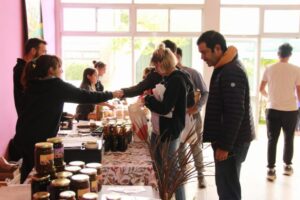 Por las inclemencias del tiempo, se realizó en la sede de Cultura, donde una importante cantidad y variedad de productores y emprendedores locales ofrecieron entre otras cosas, frutas, verduras, panificados, miel, dulces, quesos, etc.