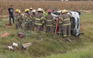 En el lugar trabajaron tres dotaciones de los Bomberos Voluntarios, que debieron cortar el techo del auto para rescatar a los heridos, efectivos de Gendarmería Nacional y personal del SAME.
