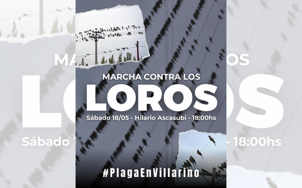 Hilario Ascasubi, una localidad en el partido de Villarino, en el sur bonaerense, hará este sábado una marcha inédita. Será una protesta contra los loros del lugar, con el objetivo de lograr ser escuchados por las autoridades locales en torno a lo que allí consideran es una superpoblación de esta especie de aves, en medio de dos casos graves de psitacosis, uno de ellos mortal, registrados en el pueblo.