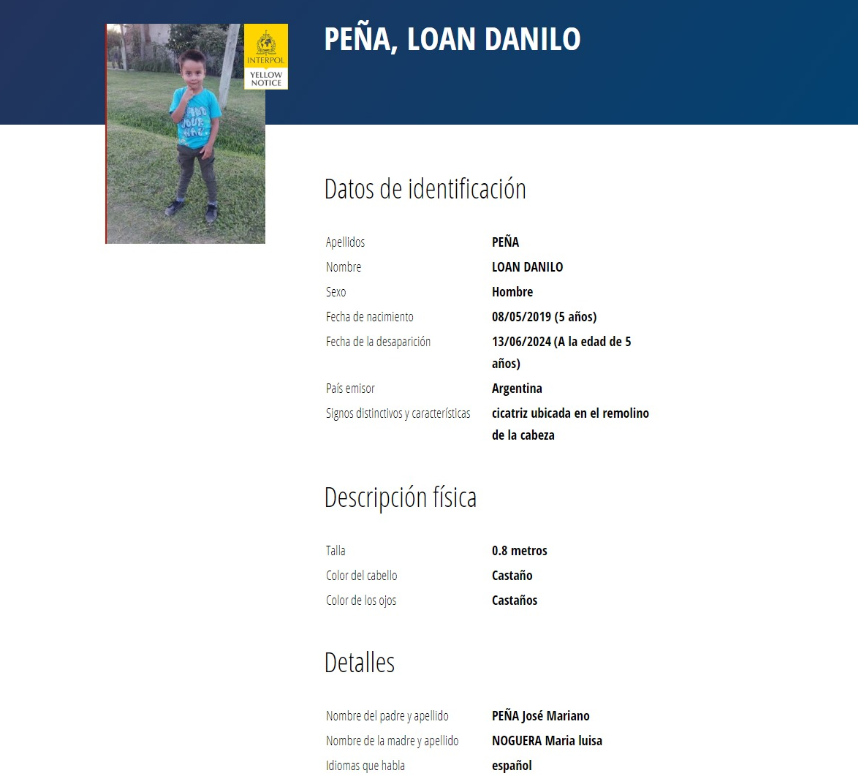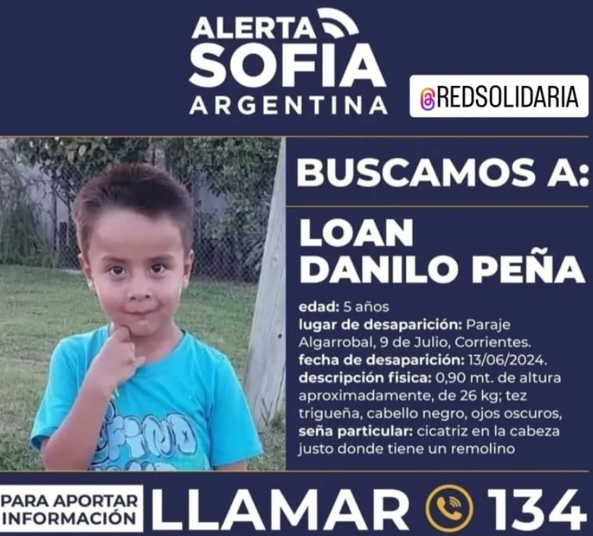 En las últimas horas Interpol emitió una alerta amarilla para encontrar a Loan Danilo Peña, el niño de 5 años que desapareció hace cinco días en la localidad de 9 de Julio, en Corrientes.