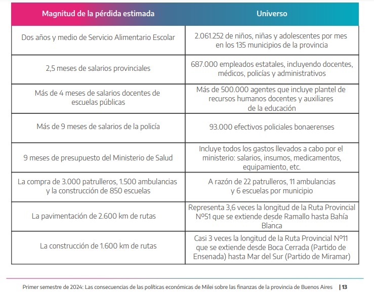 El Gobierno provincial dio a conocer este lunes los detalles de un nuevo informe sobre el impacto de las políticas de Javier Milei en territorio bonaerense y estimó una pérdida de recursos de $6,3 billones por la caída de la recaudación, la eliminación de transferencias obligatorias y la paralización de la obra pública, al tiempo que sostuvo que hay 155 mil nuevos desempleados.