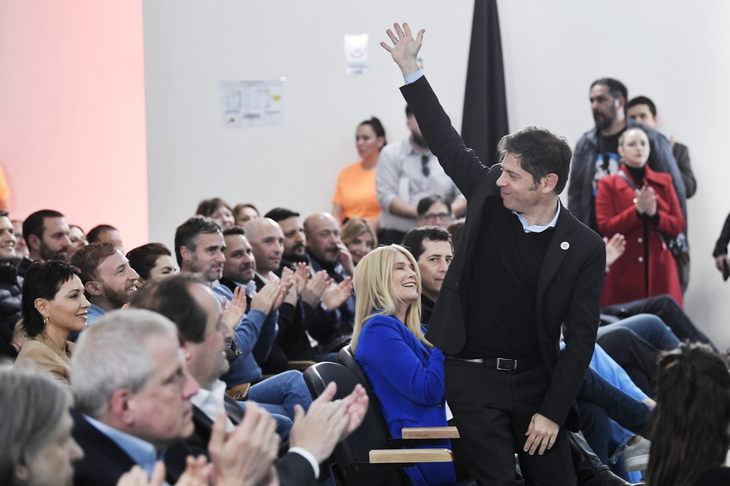 El gobernador llegó al acto en la UNO (Universidad Nacional del Oeste) acompañado de la vice Verónica Magario y compartió primera fila con referentes del camporismo como el diputado Facundo Tignanelli –junto a Mendoza uno de los dirigentes más cercanos a Máximo Kirchner- y el senador Eduardo “Wado” De Pedro.