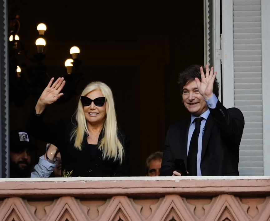 Entre risas y gestos de afecto, la conductora y el mandatario salieron al balcón presidencial a saludar a la gente que pasaba por la Plaza de Mayo.