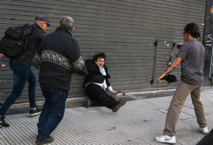 En tanto, desde la pizzería, Fijap habló en un móvil de TN. “Estoy cortado en las manos, estoy todo golpeado. Como siempre voy a las marchas a hacer entrevistas, voy a preguntar, a debatir, como tiene que ser en un país sano, normal. Se ve que esto no se puede hacer”, sostuvo. Y añadió: “Vino toda una horda y me empezaron a cagar a piñas, me escupieron, me robaron el celular. Es con lo que laburo, me lo manotearon. Gracias a Dios tengo todo grabado con audio con el otro celular”.