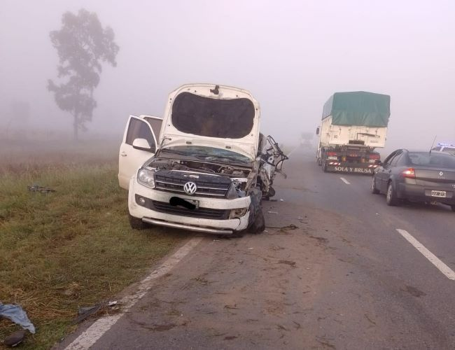 En el momento del hecho, había niebla y la visibilidad estaba reducida en la el sector en que se dio. Se estima que la camioneta rozó en un principio con uno de los camiones y luego fue embestida por el otro.