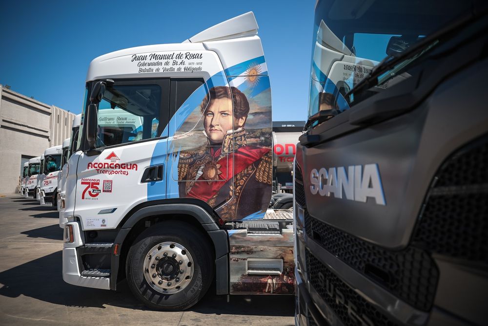 “Recorremos el país desde hace 75 años, atravesando geografías y contextos muy distintos. Hace más de un año decidimos que esa misma flota, que conecta regiones y economías, también podía homenajear a los personajes históricos que hicieron posible que hoy tengamos una patria con himno y bandera, y que nos representan en el mundo”, señaló Alejandro Galeano, uno de los dueños de Aconcagua Transportes.