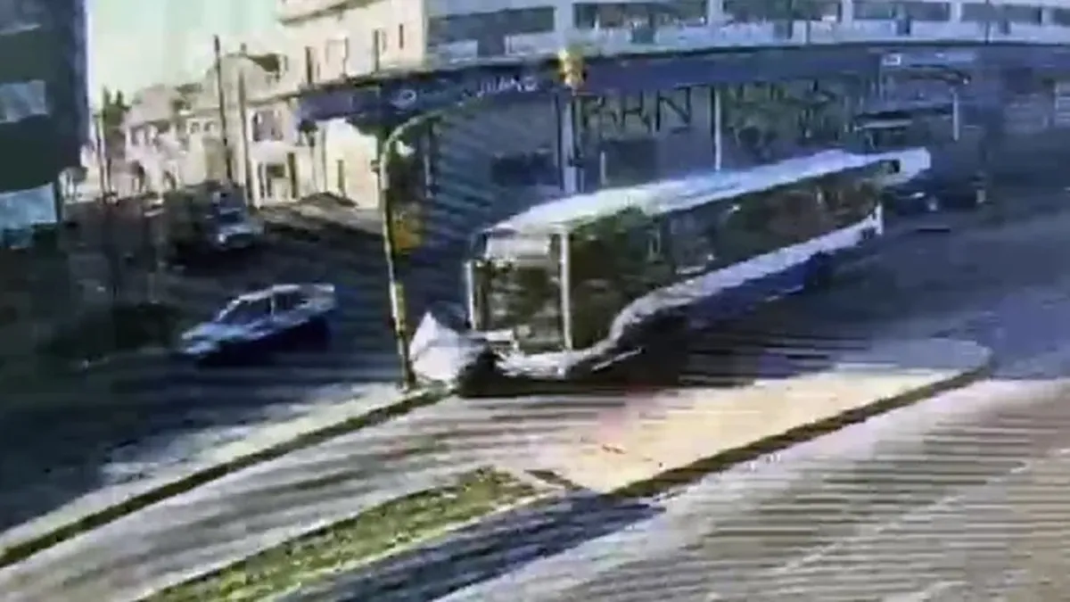 La unidad, un 218 de la empresa Almafuerte, venía en velocidad y se llevó puesto al auto. Lo arrastró varios metros y lo aplastó contra el semáforo que estaba en la esquina, antes de seguir unos metros más.