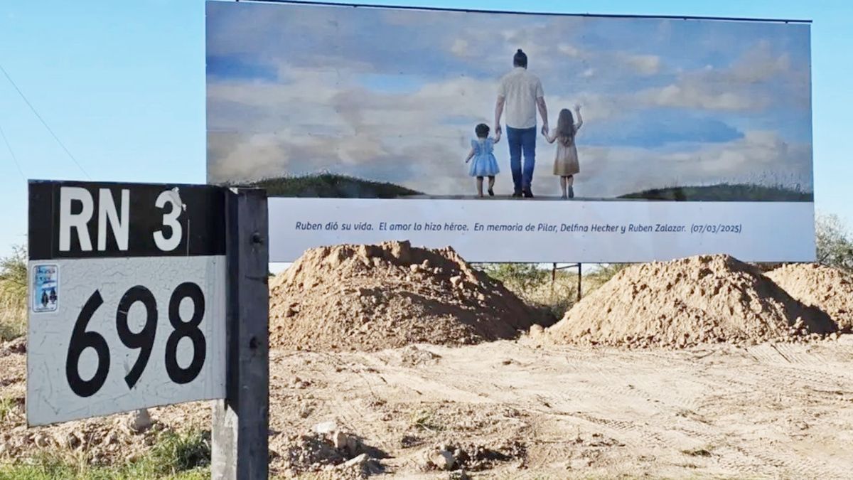 A casi un año de la trágica inundación que vivió Bahía Blanca el 7 de marzo de 2025, una gigantografía colocada en el ingreso a la localidad de General Daniel Cerri recuerda a Rubén Salazar y las hermanitas Pilar y Delfina Hecker, todos fallecidos aquel fatídico viernes. En medio de la copiosa lluvia que azotaba la Ruta 3, Salazar intentó ayudar a las dos niñas para que no se las llevara la fuerza del agua acumulada en la carretera. Lamentablemente, los tres fallecieron en la tragedia.