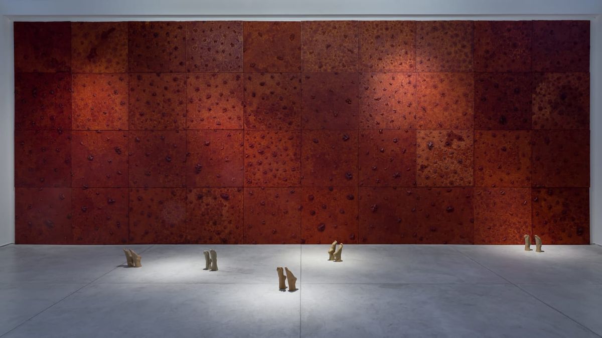Obra autorreferencial que se hace visible en un gran muro sanguinolento que domina una de las salas y que lleva rastros impresos en la superficie porque “yo estoy dentro de él” señala la artista. También se refiere a sus joyas en las que rescata el trabajo manual-en absoluto convencional- “que no están para lucir sino para dar un mensaje”.