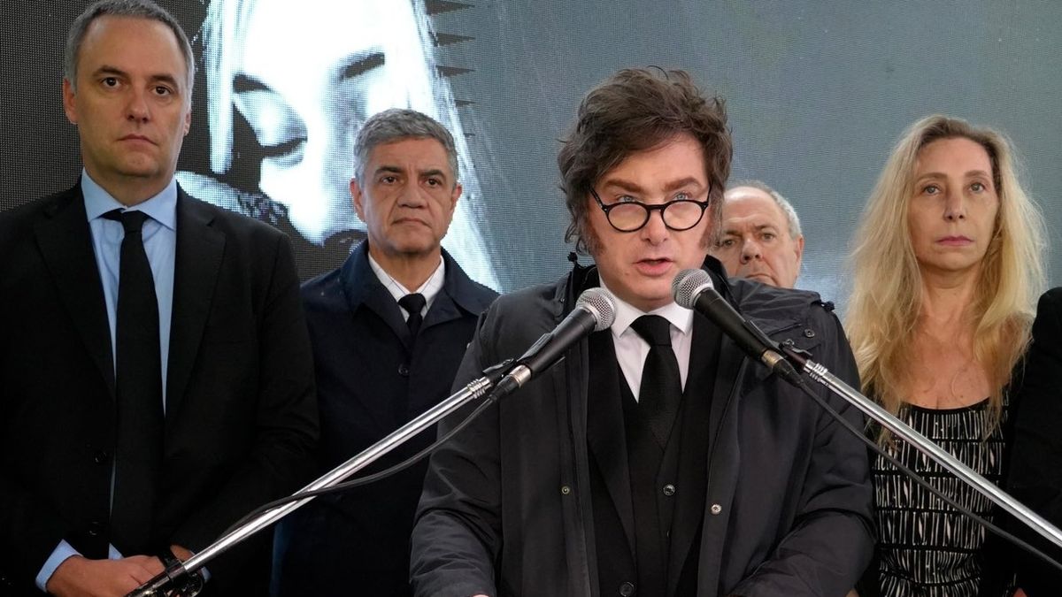 Milei estuvo en la esquina de Arroyo y Suipacha donde, el 17 de marzo de 1992, explotó un coche bomba que mató 29 personas y dejó otras 250 heridas, para una nueva edición de la ceremonia que a las 14.50 conmemora el momento del estallido.