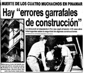 El caso que más ha quedado en la memoria colectiva ocurrió un poco más alejado en el tiempo, en 1992. El hecho ocurrió el 27 de enero de ese año, cuando cuatro adolescentes de entre 16 y 18 años charlaban en el balcón del departamento 8° “E” del edificio Atica 1, ubicado en la calle De las Toninas de Pinamar.